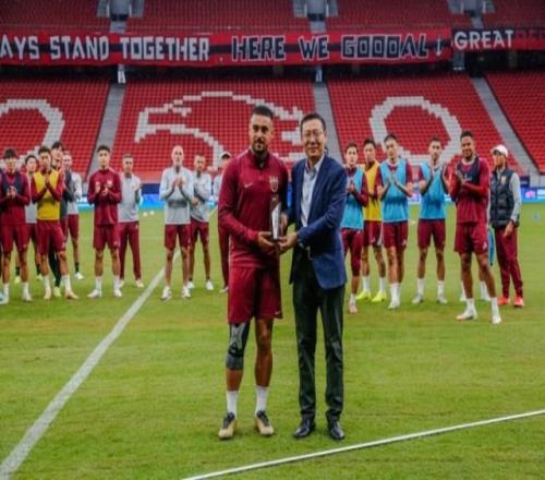 在昨天的官方训练开始前,上海海港为莱昂纳多和李帅举行了颁奖仪式。俱乐部总经理沙良昌为莱昂纳多颁发第25轮最佳球员奖杯,为李帅赠送百场纪念球衣。 在中超联赛第25轮海港队客场对阵北京国安的比赛中,莱昂纳多上演“帽子戏法”,帮助球队赢得胜利。凭借这一优异表现,他获评当轮最佳球员。 在中超联赛第26轮的比赛中,海港队员李帅迎来了他代表俱乐部出战各项赛事的第100场比赛,解锁其个人百场里程碑。