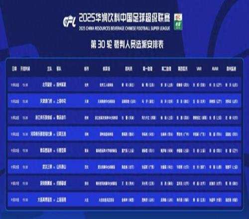 中午时分,足协官宣了最后一轮的裁判选派。