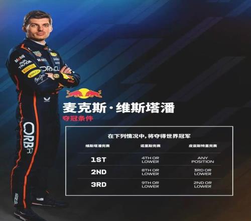 维斯塔潘的处境则充满挑战。他目前落后12分,想要逆转夺冠,必须争取胜利,并寄希望于诺里斯的名次足够靠后。此前维斯塔潘在接受采访时表示,他将"尽力最大化表现",并以轻松姿态迎接最后一战。