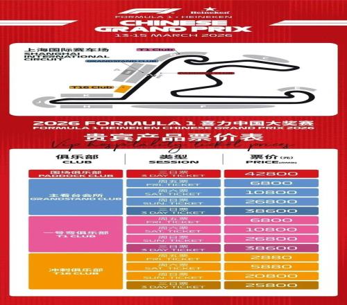 就在2025 F1收官之战前,12月5日,2026 F1中国大奖赛票价已经正式出炉!12月11日上午11:00,赛事票务销售也将正式启动!