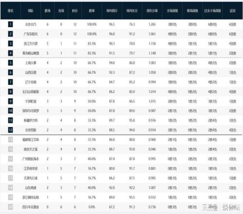 CBA积分榜:北京、广东皆6连胜+天津首胜,山东、浙江排名靠后